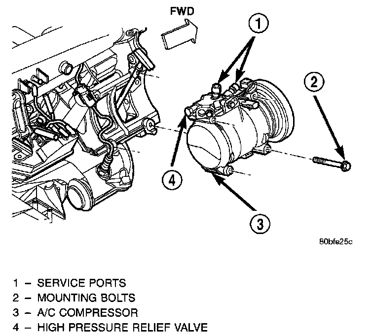 For installation, reverse the above procedures. Torque Compressor bolts to 28 N.m (21 ft. lbs.)