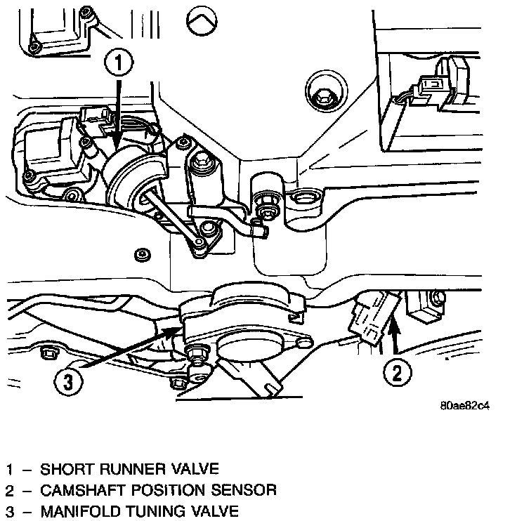 The Camshaft Position Sensor is installed in the timing belt housing cover above the left camshaft sprocket.