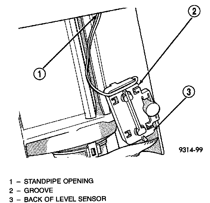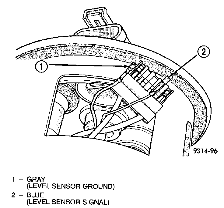 2. Remove wire terminal retaining clip from connector. Note the location of terminals for the level sensor wires.