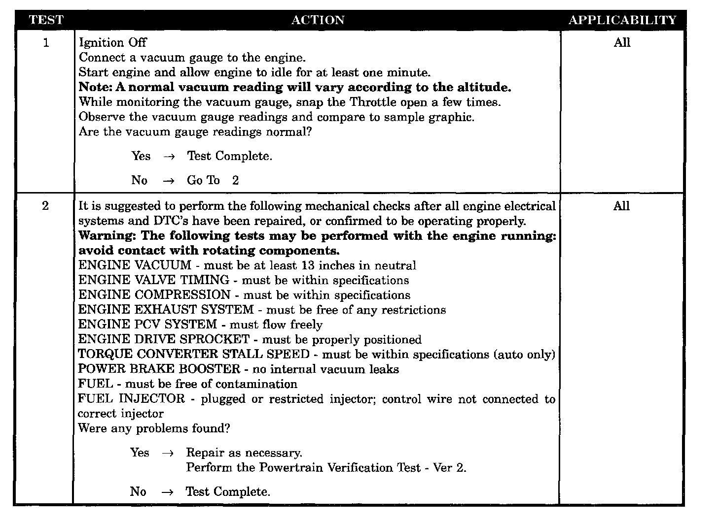 Driveability problem engine mechanical
