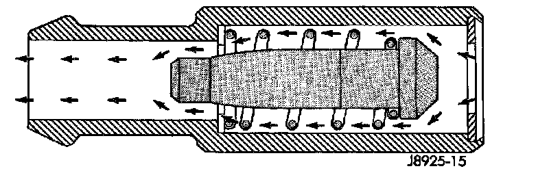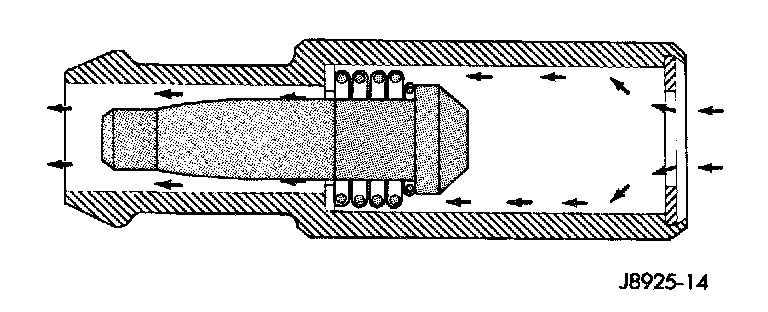 When the engine is not operating or during an engine backfire, the spring forces the plunger back against the seat. This prevents vapors from flowing through the valve.