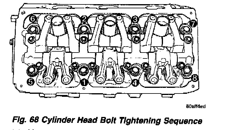 Tighten the cylinder head bolts in the sequence shown. Using the 4 step torque-turn method, tighten according to the following torque values: