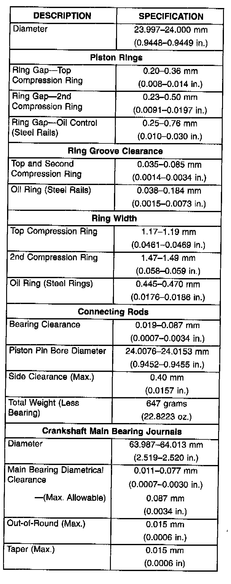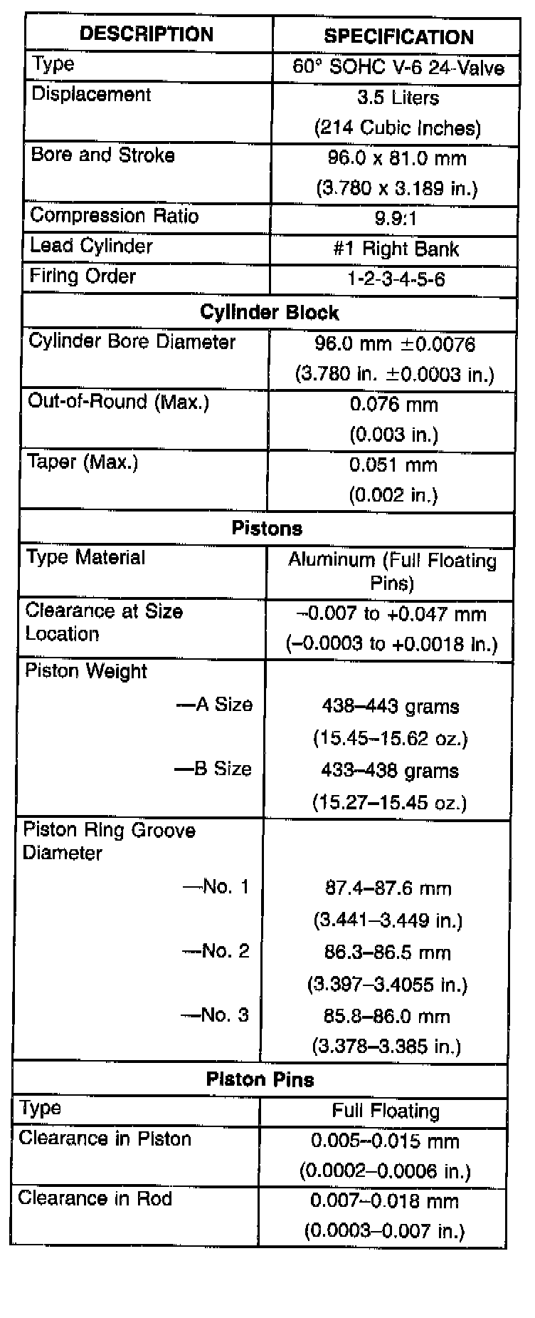 Engine Specifications