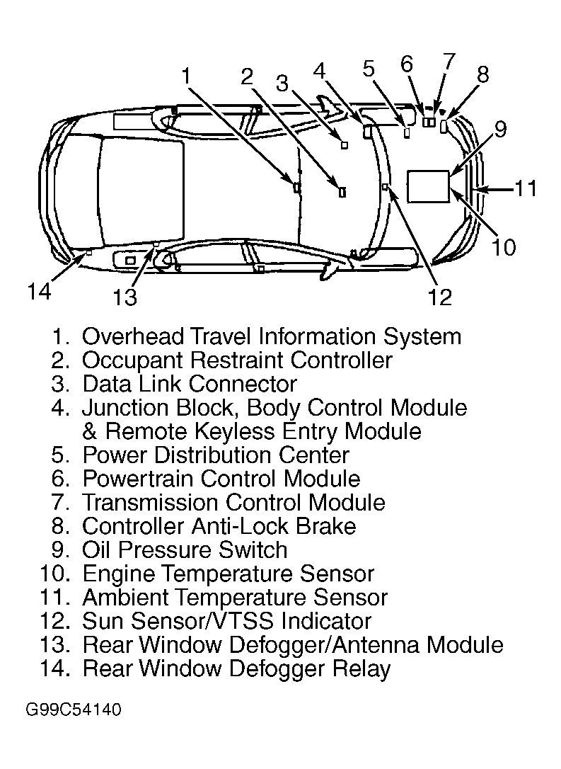 | Overhead Travel Information System (OTIS) Module | Front Center Of Headliner |