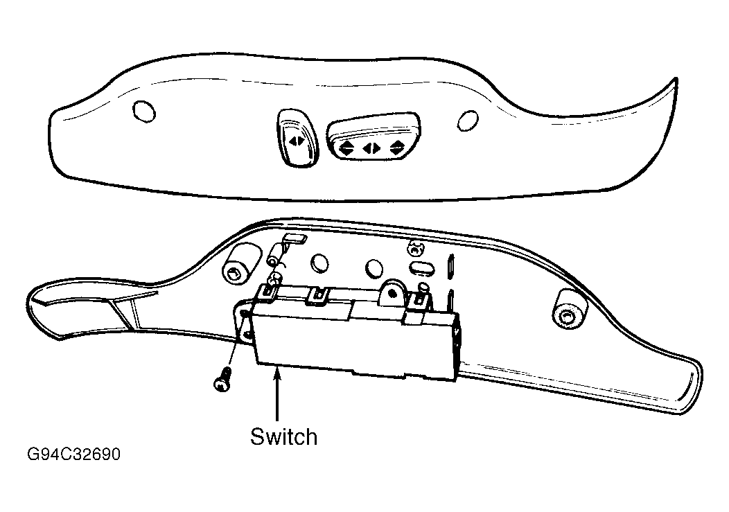 The front control switch, located on the outboard side of each seat, moves seat forward and backward, front of seat up and down and rear of seat up and down. The recliner switch moves back of seat up and down. See Figure .