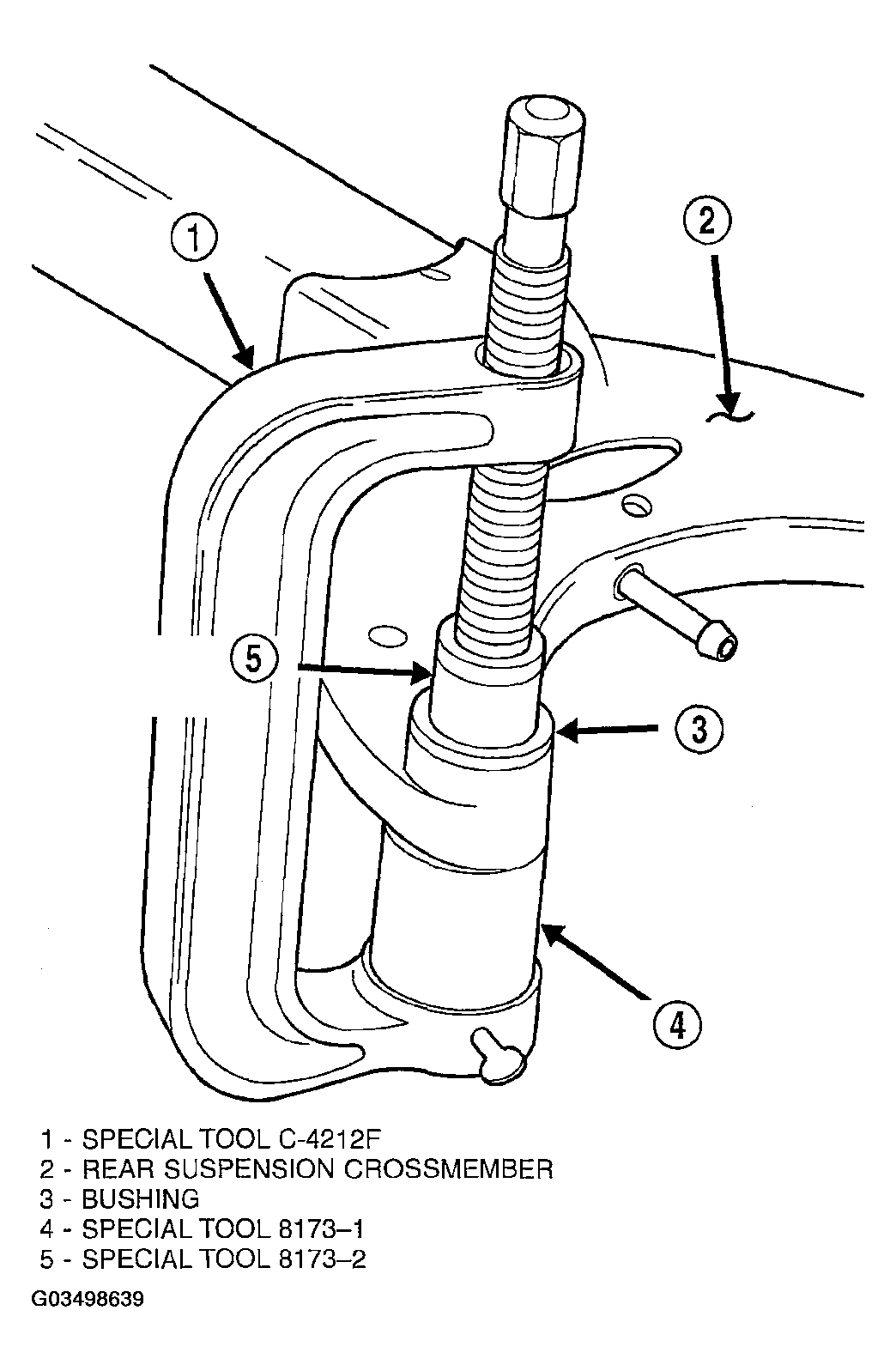 - Turn the threaded rod, pushing bushing down through crossmember and into cup 8173-1.