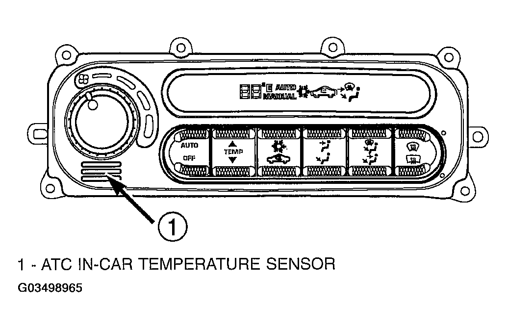 The Automatic Temperature Control (ATC) in-car temperature sensor returns electrical signals to the Body Control Module (BCM). The in-car temperature sensor is used on ATC equipped vehicles only. The in-car temperature sensor is made up of two parts. One part is the in-car sensor aspirator motor assembly, and the second part is a temperature thermistor. The in-car sensor aspirator motor assembly attaches to the back of the ATC Control head (Fig 1 ). This assembly has a small fan and a motor which draws air through the intake on the front of the ATC control. The in-car sensor thermistor is located inside of the ATC Control Head. The in-car sensor aspirator motor is part of the ATC Control and not a separate serviceable part. The ATC Control must be replaced if there is a fault relating to the motor. The in-car temperature sensor thermistor is part of the ATC Control and not a separate serviceable part. One must replace the ATC Control if the ATC self-diagnostics indicates a fault code. (Refer to DIAGNOSIS AND TESTING - SELF DIAGNOSTICS )