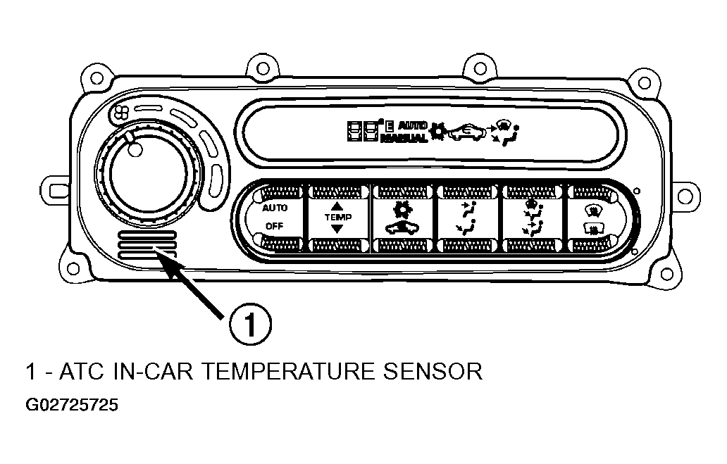 The Automatic Temperature Control (ATC) in-car temperature sensor returns electrical signals to the Body Control Module (BCM). The in-car temperature sensor is used on ATC equipped vehicles only. The in- car temperature sensor is made up of two parts. One part is the in-car sensor aspirator motor assembly, and the second part is a temperature thermistor. The in-car sensor aspirator motor assembly attaches to the back of the ATC Control head Fig 1 . This assembly has a small fan and a motor which draws air through the intake on the front of the ATC control. The in-car sensor thermistor is located inside of the ATC Control Head. The in-car sensor aspirator motor is part of the ATC Control and not a separate serviceable part. The ATC Control must be replaced if there is a fault relating to the motor. The in-car temperature sensor thermistor is part of the ATC Control and not a separate serviceable part. One must replace the ATC Control if the ATC self-diagnostics indicates a fault code. (Refer to DIAGNOSIS AND TESTING ).