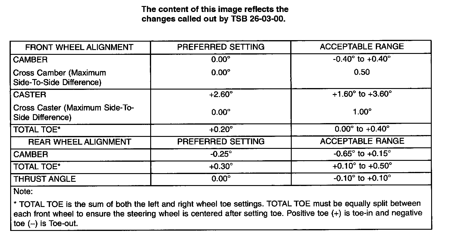 All wheel alignments are to be set with the vehicle at curb height. Refer to Curb Height Measurement.
