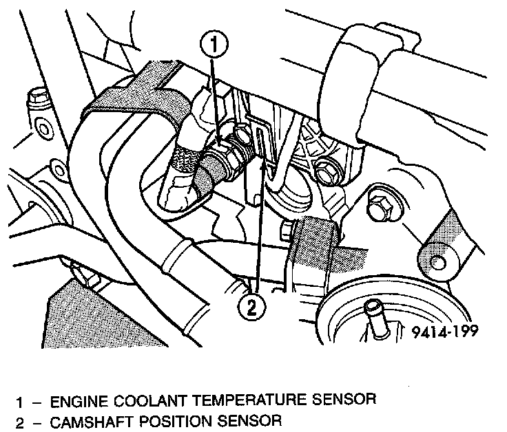 The coolant sensor threads into the rear of the cylinder head, next to the camshaft position sensor. New sensors have sealant applied to the threads.