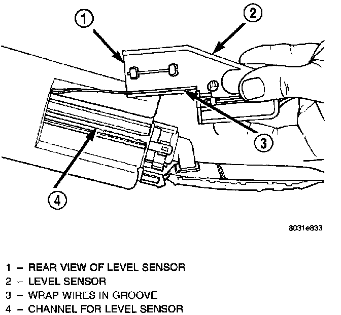 4. Install level sensor wires in connector. Push the wires up through the connector and then pull them down until they lock in place. Ensure signal and ground wires are installed in the correct position.