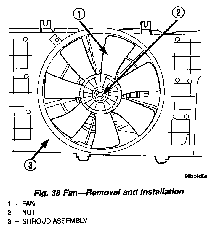 2. Install fan retaining nut and tighten to 3.8 Nm (34 inch lbs.).