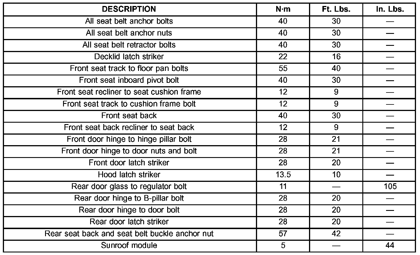 Torque Specifications:
