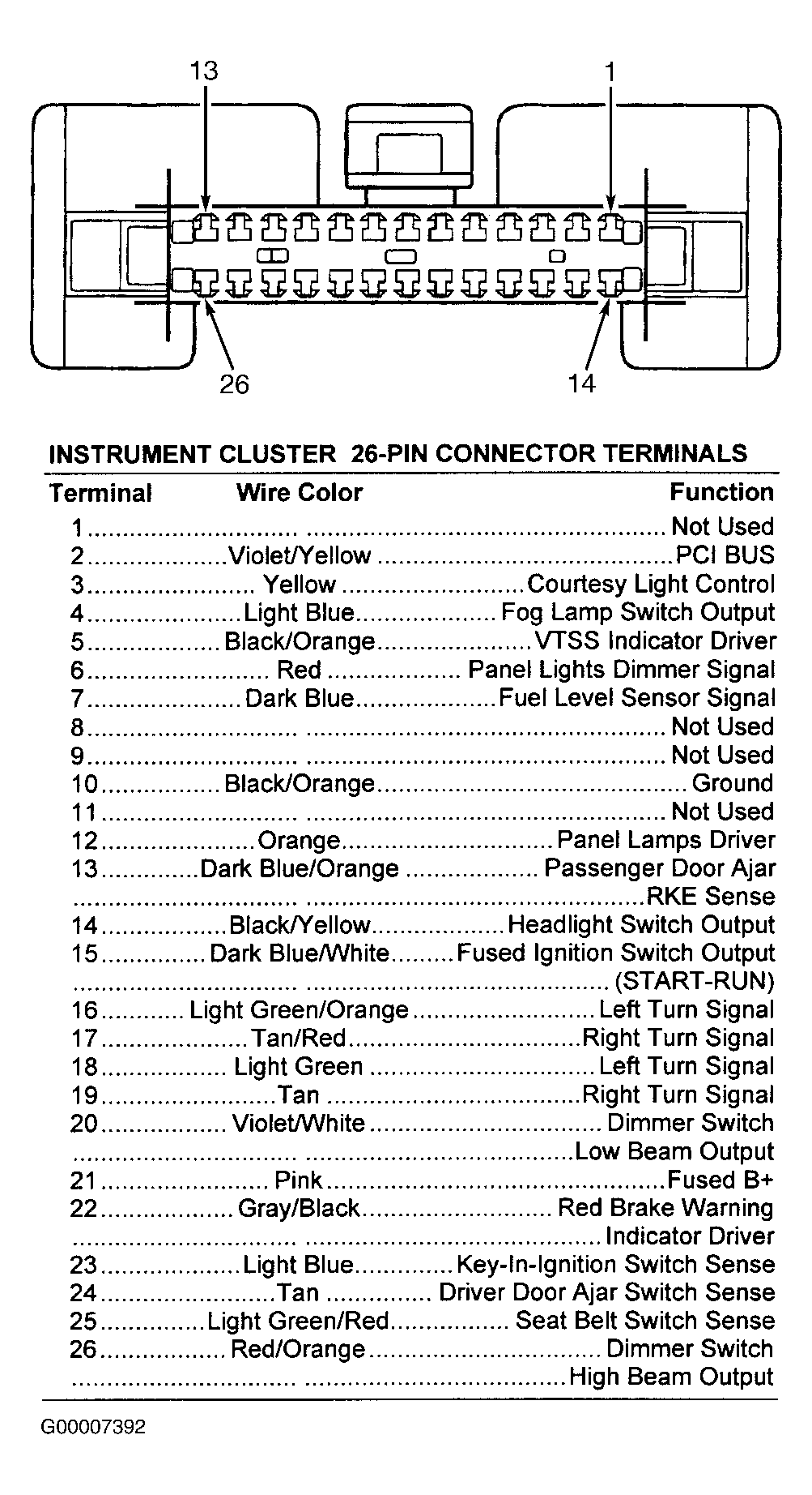 Fig 11: Identifying Instrument Cluster Connector Terminals