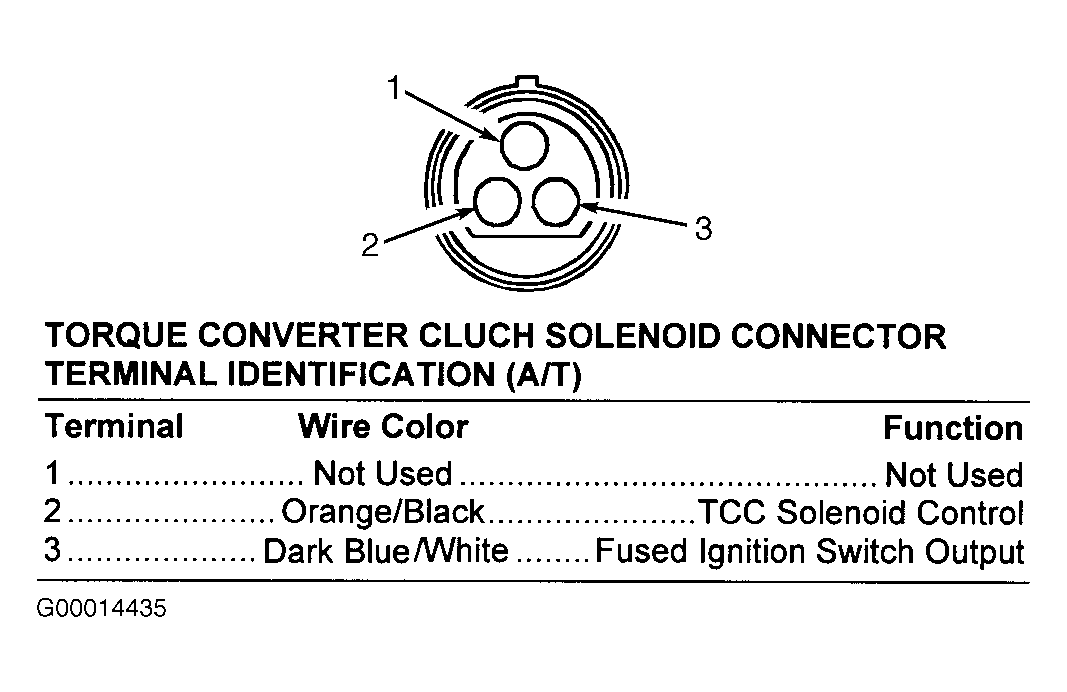 Fig 23: Identifying Torque Converter Clutch Solenoid (A/T) Connector Terminals