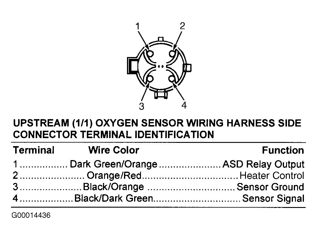 Fig 24: Identifying Upstream (1/1) Oxygen Sensor Connector Terminals