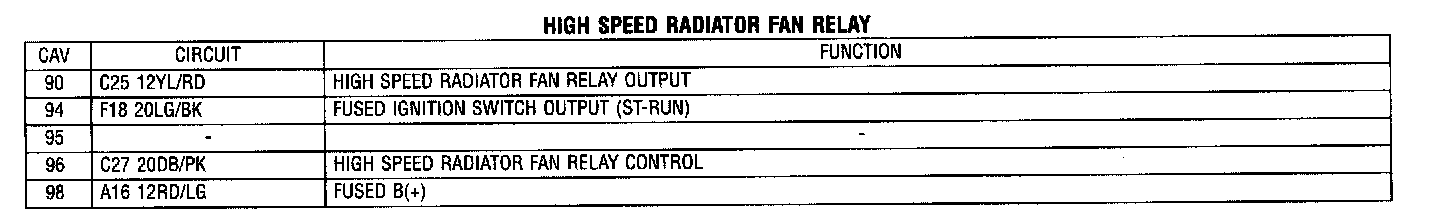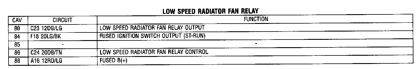 Low Speed Radiator Fan Relay: