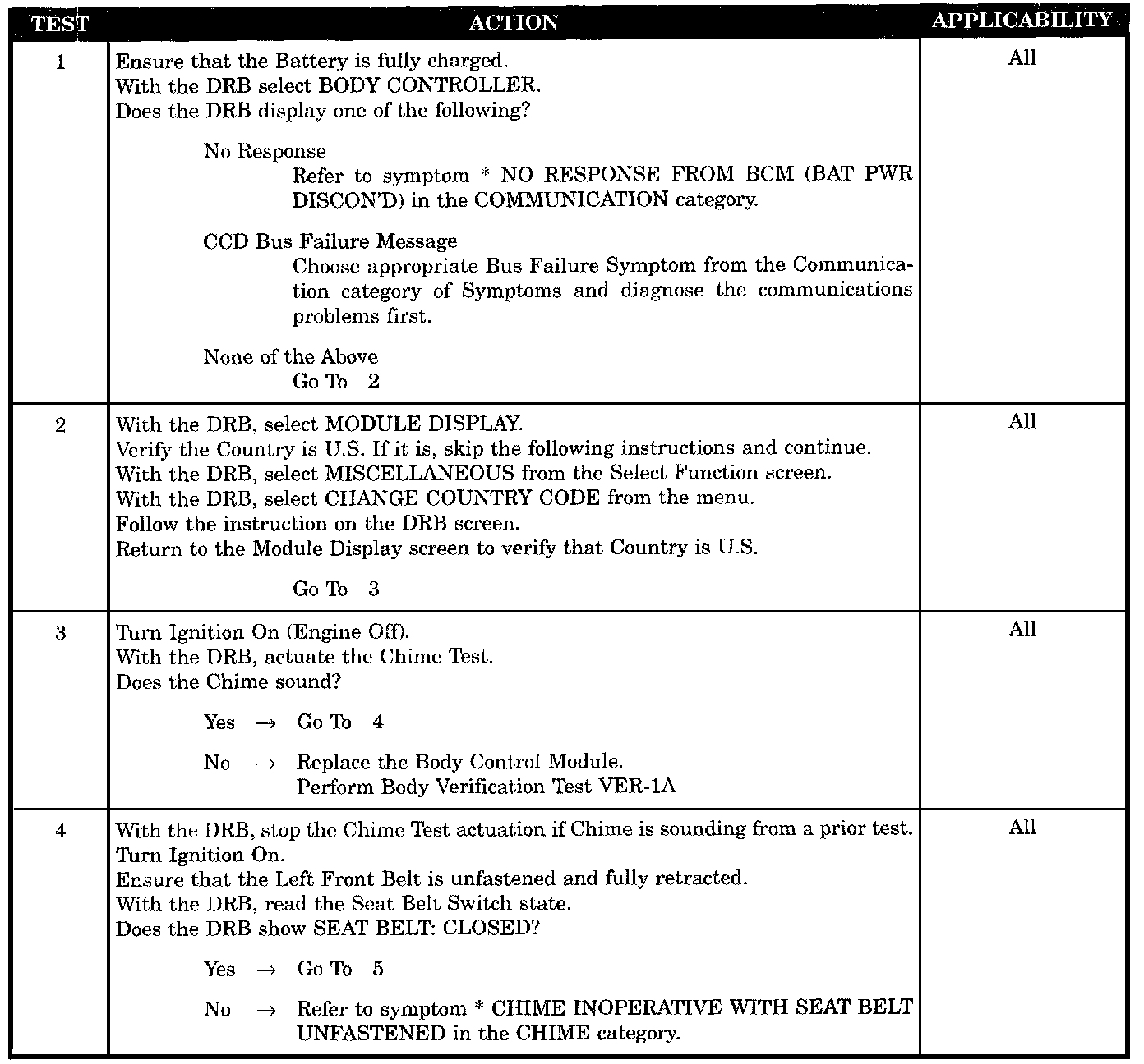 CHIME INOPERATIVE AT ALL TIMES