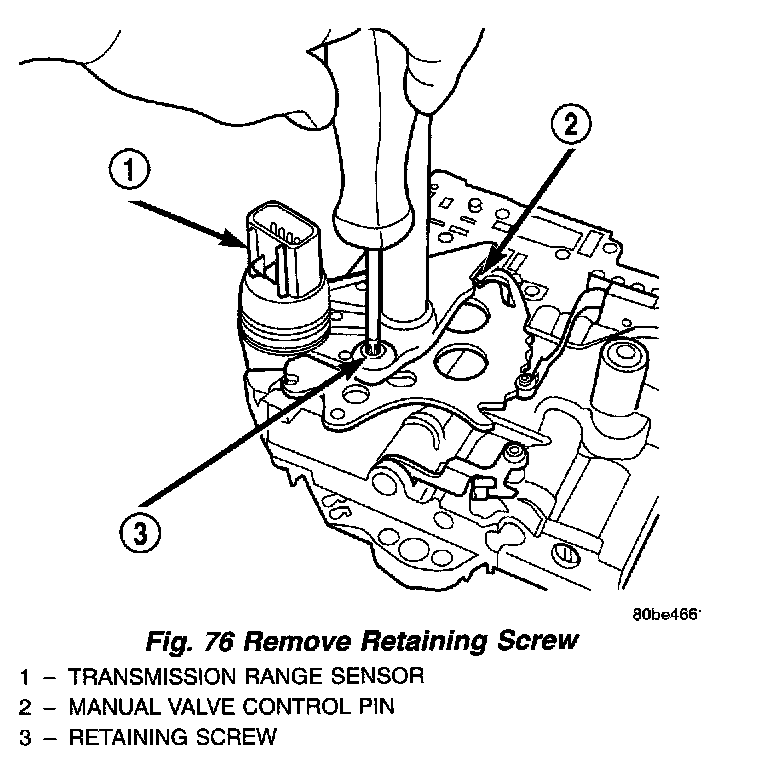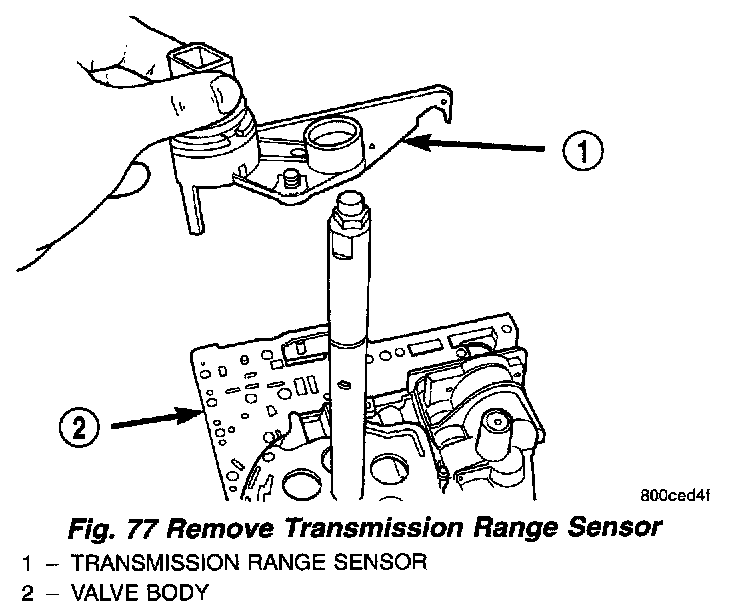 14. Slide Transmission Range Sensor up the manual shaft and remove (Fig. 77).