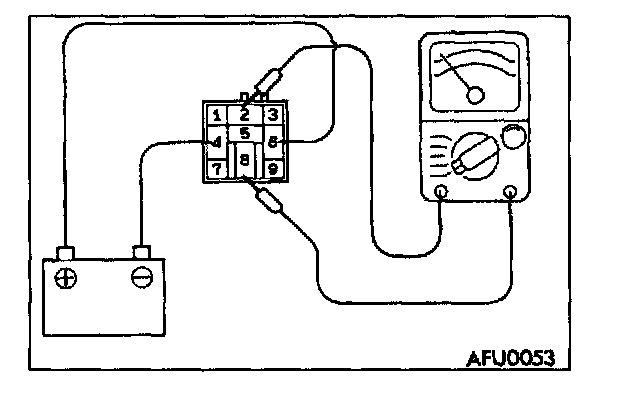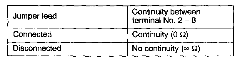 Check the continuity between relay terminal No.2 - 8 while connecting and disconnecting the jumper lead at the battery (-) terminal.