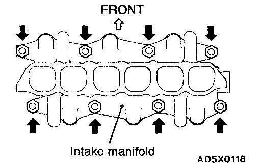 Tighten the intake manifold mounting nuts one bank after the other by the following procedure.