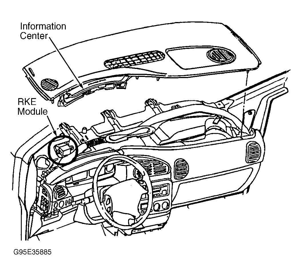 - Turn ignition off. Access RKE module under instrument panel cover. See Figure . Disconnect RKE module connector. Measure resistance between ground and terminal No. 4 (Black/Light Green wire) at RKE module connector. If resistance is 5 ohms or more, repair open in Black/Light Green wire. If resistance is less than 5 ohms, go to next step.
