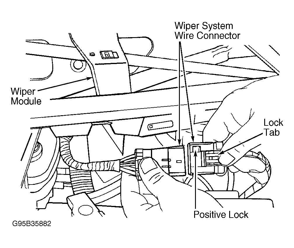 - Turn ignition off. Disconnect wiper module connector. See Figure . Turn ignition on. Measure voltage between ground and terminal No. 1 (Brown/White wire) at wiper module harness connector. If voltage is more than .5 volt, repair short to voltage in Brown/White wire between PDC and wiper module. If voltage is .5 volt or less, go to next step.