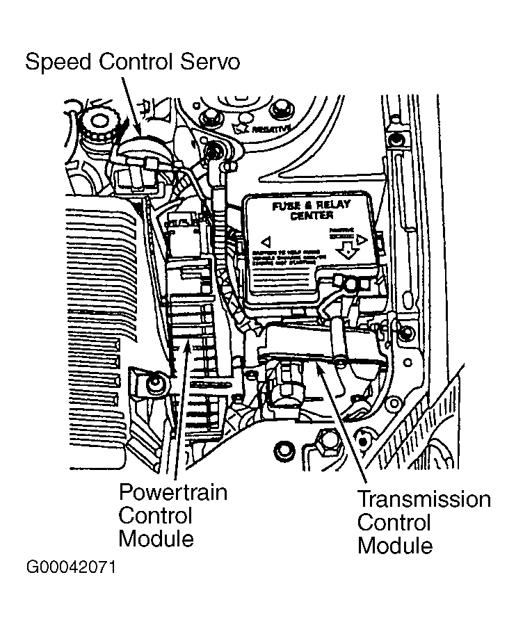 - Powertrain Control Module (PCM) is located at driver's side front corner of engine compartment, near power distribution center. See Fig 1. Disconnect negative battery cable.