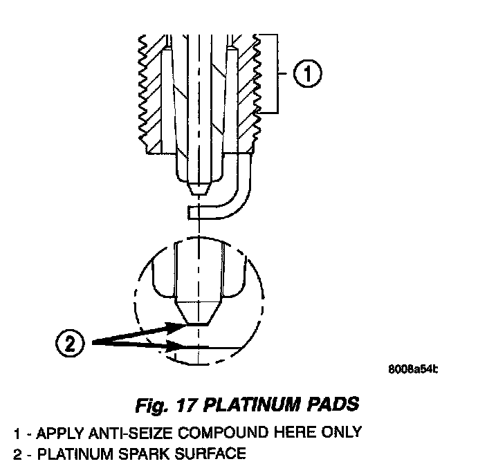A thin platinum pad is welded to both or center electrode end(s). Extreme care must be used to prevent spark plug cross threading, mis-gaping and ceramic insulator damage during plug removal and installation.
