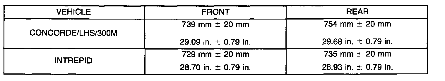 Home >> Chrysler >> 2001 >> Intrepid (CANADA) V6-3.2L >> Repair and Diagnosis >> Maintenance >> Alignment >> Service and Repair >> Wheel Alignment >> Wheel Alignment Specifications Chart
