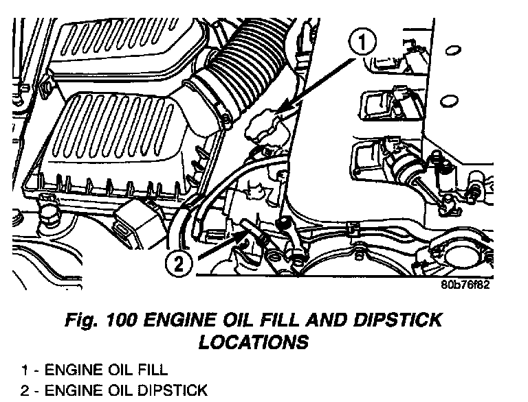 Checking the oil while the vehicle is on level ground will improve the accuracy of the oil level reading (Fig. 100). Add only when the level is at or below the ADD mark.