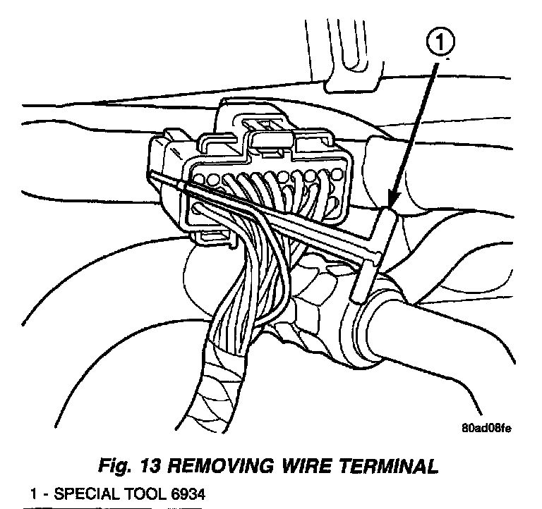 4. Insert the probe end of special tool 6934 into the back of the connector cavity (Fig. 13).