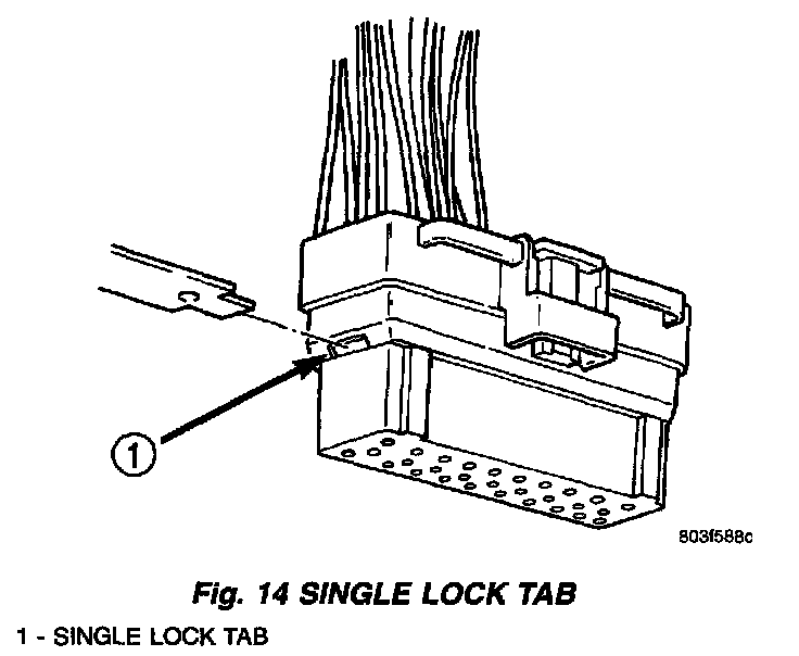4. Push in the single lock tab on the side of the connector (Fig. 14).