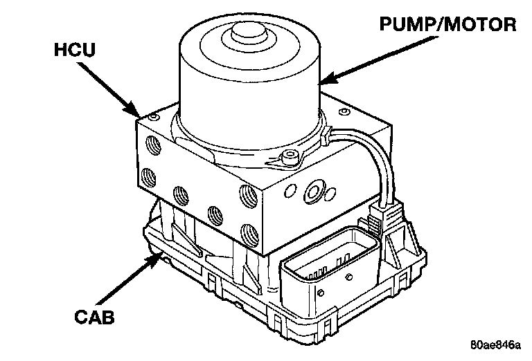 Two different ICU's (HCU and CAB) are used on this vehicle depending on whether or not the vehicle is equipped with traction control. The HCU on a vehicle equipped with traction control has a valve block that is approximately one inch longer than a HCU on a vehicle that is equipped with ABS only.