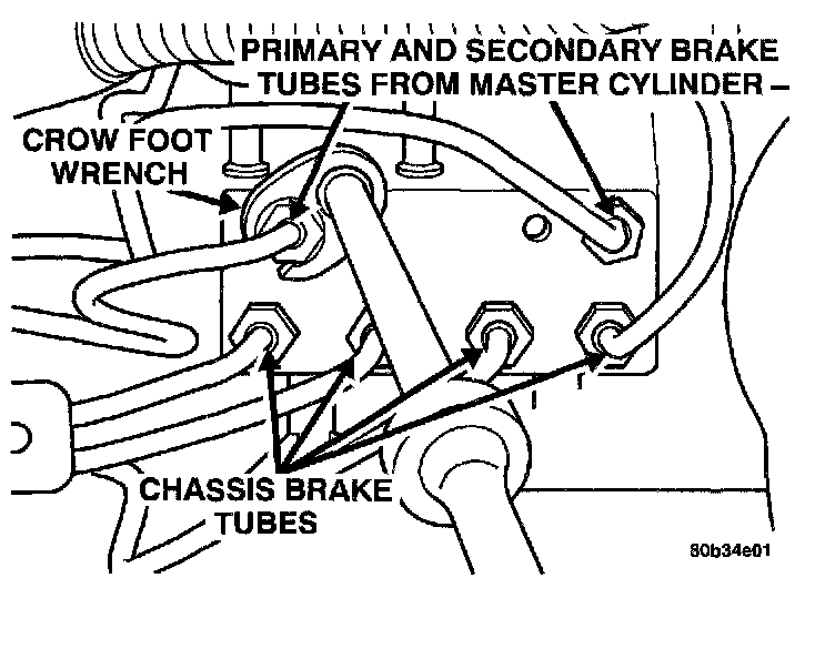 8. Remove the primary and secondary brake tubes coming from the master cylinder, at the HCU, using a crow foot wrench.