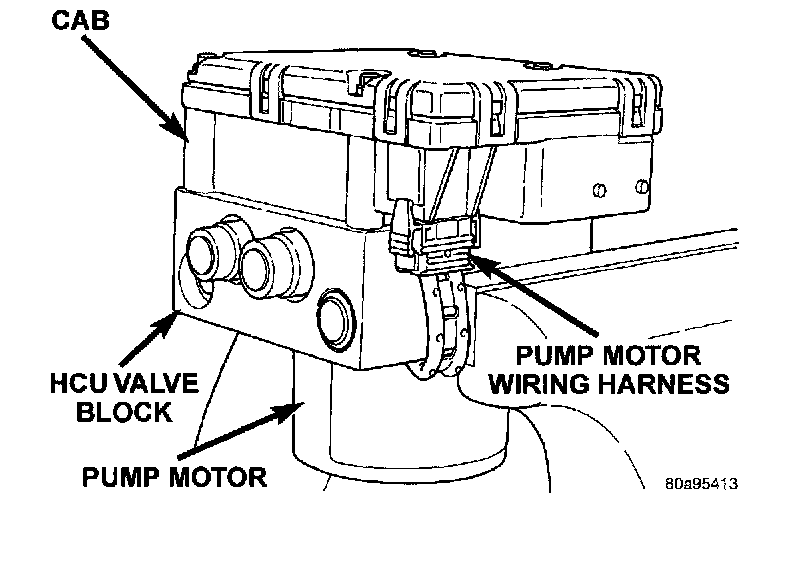 2. Disconnect the pump/motor wiring harness from the CAB.