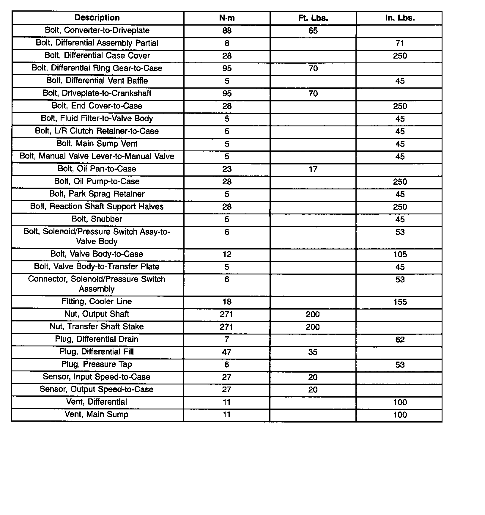 DIFFERENTIAL AND DRIVELINE TORQUE SPECIFICATIONS