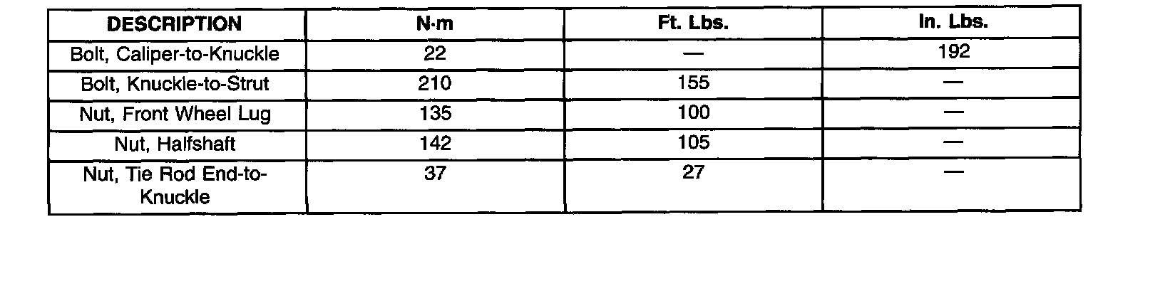 TORQUE SPECIFICATIONS