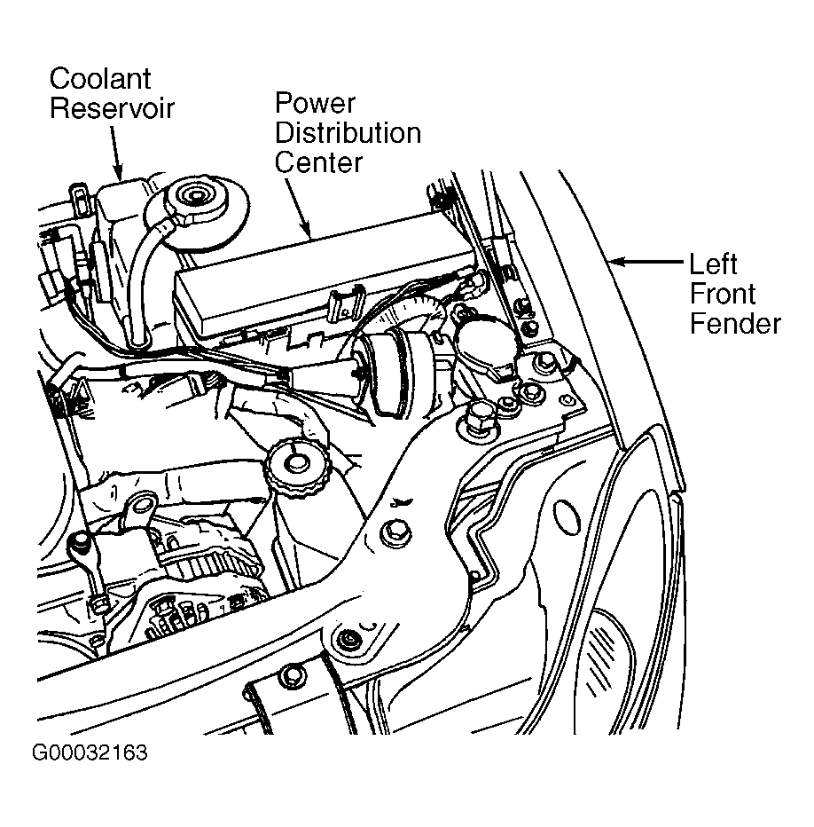 Power Distribution Center Left Side Of Engine Compartment, In Front Of Coolant Reservoir