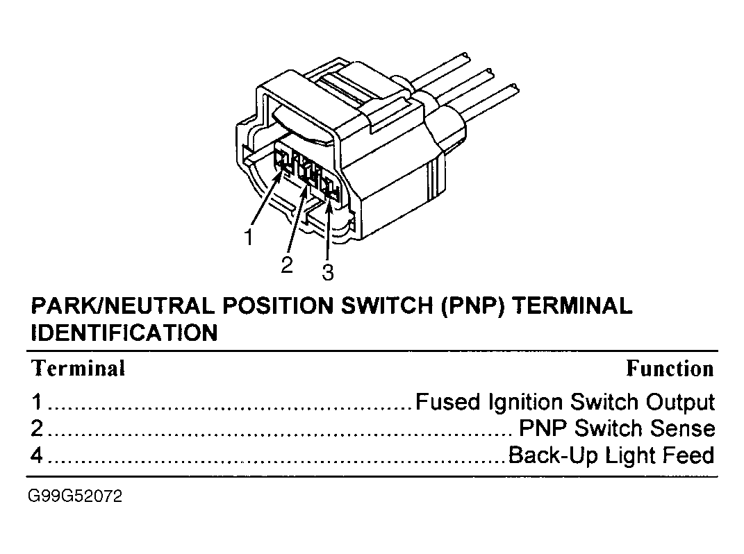 - Place gear selector in Reverse. Check continuity between ground and PNP switch center terminal. If continuity does not exist, PNP switch is okay. If continuity exists, replace PNP switch.