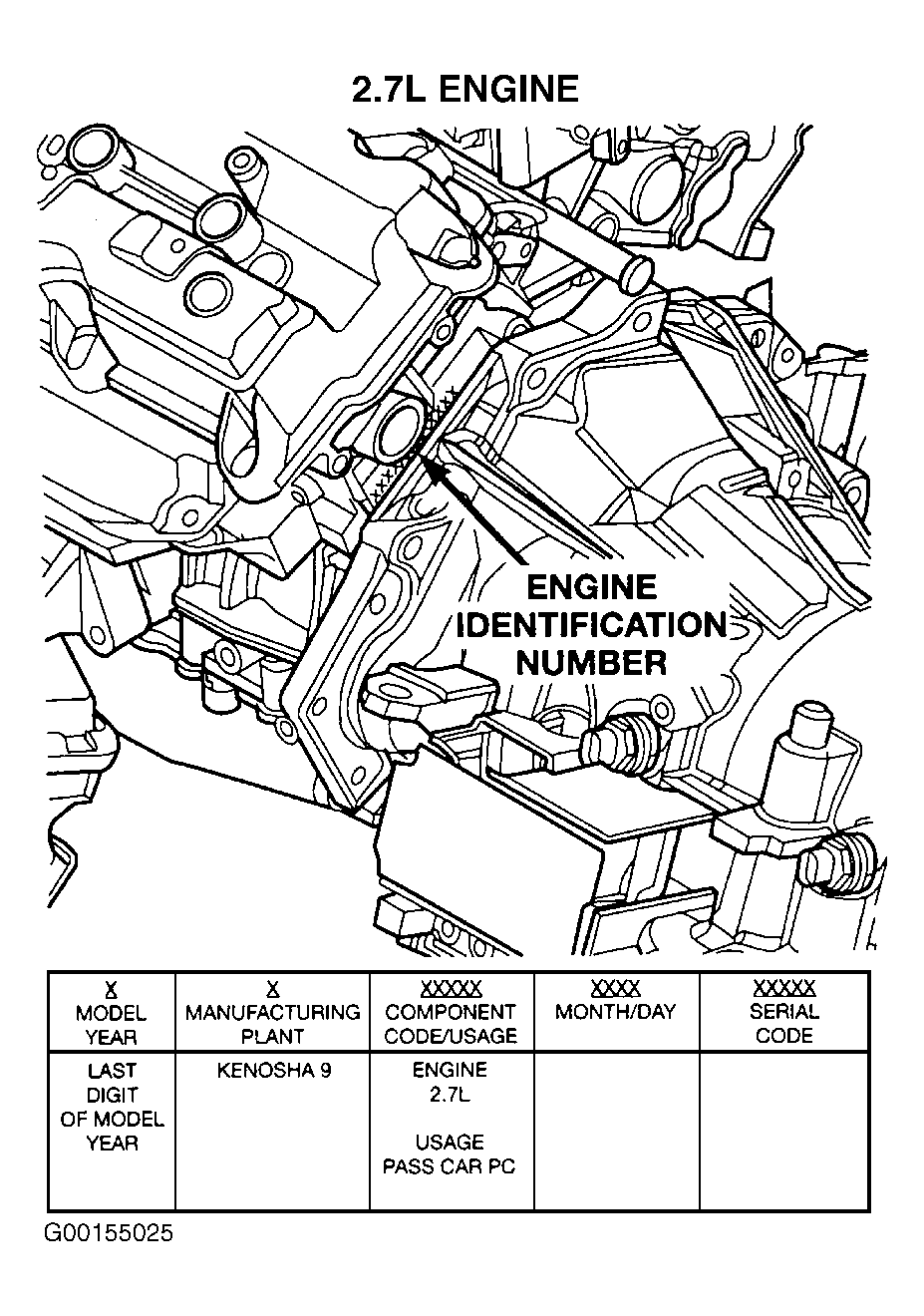 Fig 4: Locating Engine Identification Code (2.7L V6 - 300M, Concorde & Intrepid, LHS, Sebring & Stratus Sedan)