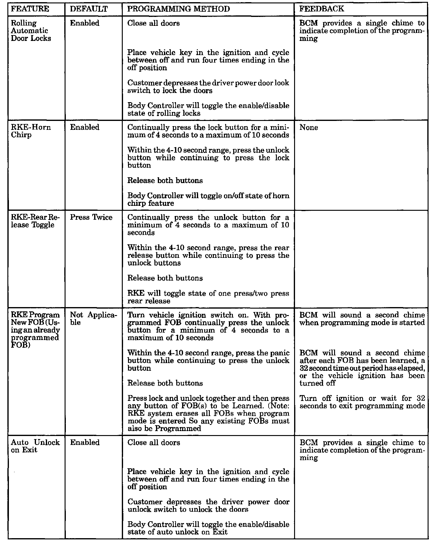 Home >> Chrysler >> 2001 >> Sebring Convertible V6-2.7L VIN U >> Repair and Diagnosis >> Body and Frame >> Body Control Systems >> Body Control Module >> Description and Operation >> System Description and Functional Operation >> Part 2 of 2 >> Part 2B