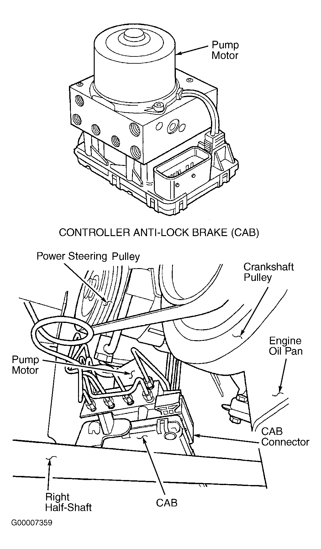 - Turn ignition off. Remove and inspect fuse No. 4 (15-amp) in junction block. Junction block is located under left side of instrument panel. If fuse is okay, reinstall fuse and go to next step. If fuse is blown, check for short to ground in White wire between Controller Anti-Lock Brake (CAB) and fuse No. 4 in junction block. Repair wiring as necessary. Replace fuse.