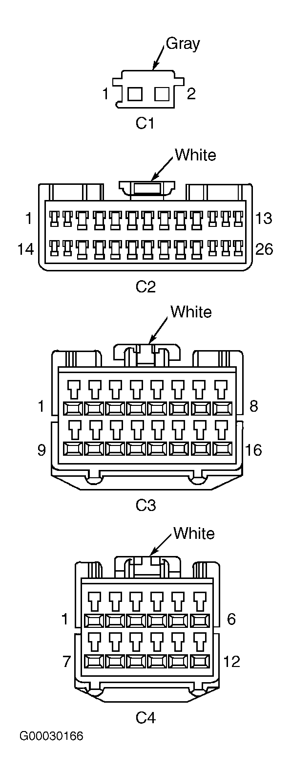 - Obtain Scope Input Cable (CH7058), Cable To Probe Adapter (CH7062) and Red and Black test probes. Connect scope input cable to channel 1 connector on scan tool. Connect Red and Black test probes and probe adapter to scope input cable. Select STANDALONE on scan tool. Select LAB SCOPE then LIVE DATA. Select 12V SQUARE WAVE. Press F2 for scope then enter to select channel. Press F2 again and use down arrow to set voltage range to 20 volts. Press F2 again to complete. Connect Black probe to ground and Red probe MSMM connector C2 terminal No. 26 (White/Violet wire). Turn ignition on. Monitor scope on scan tool. If voltage pulses between zero and 7.5 volts, go to next step. If voltage does not pulse between zero and 7.5 volts, repair open in White/Violet wire (PCI bus circuit) between MSMM and diagnostic junction port terminal No. 11. See Figure .