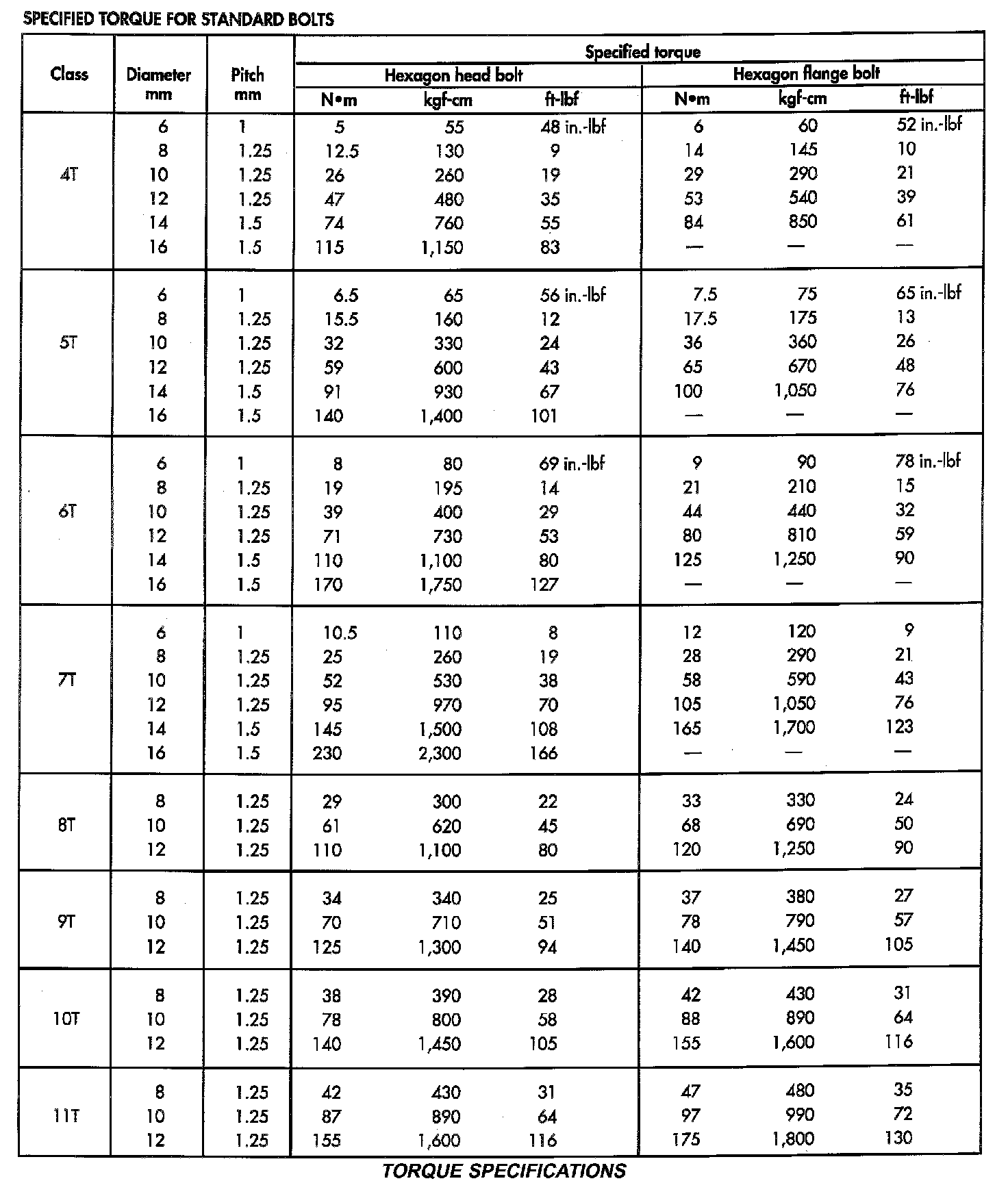Individual Torque Charts appear within many or the Groups Refer to the Standard Torque Specifications Chart for torque references not listed in the individual torque charts.