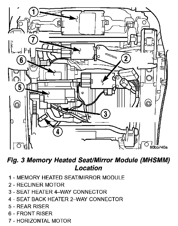 Fig. 3 Memory Heated Seat/Mirror Module (MHSMM) Location: