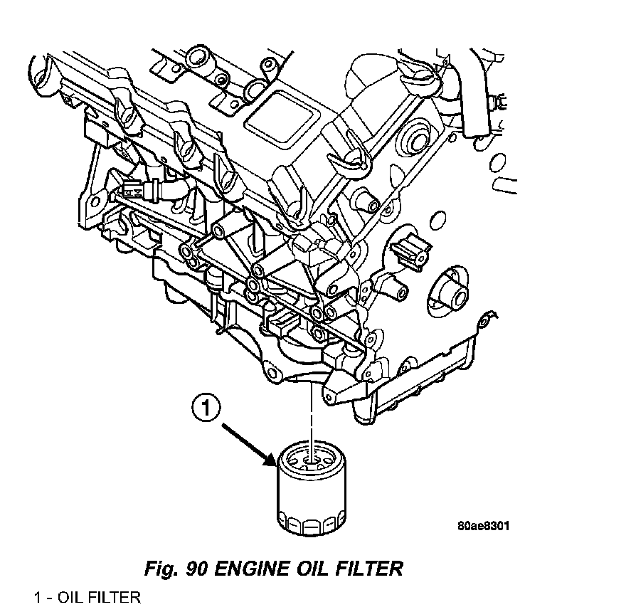 REMOVAL1. Remove oil filter using suitable oil filter wrench (Fig. 90). Dispose of oil filter following environmental guidelines.