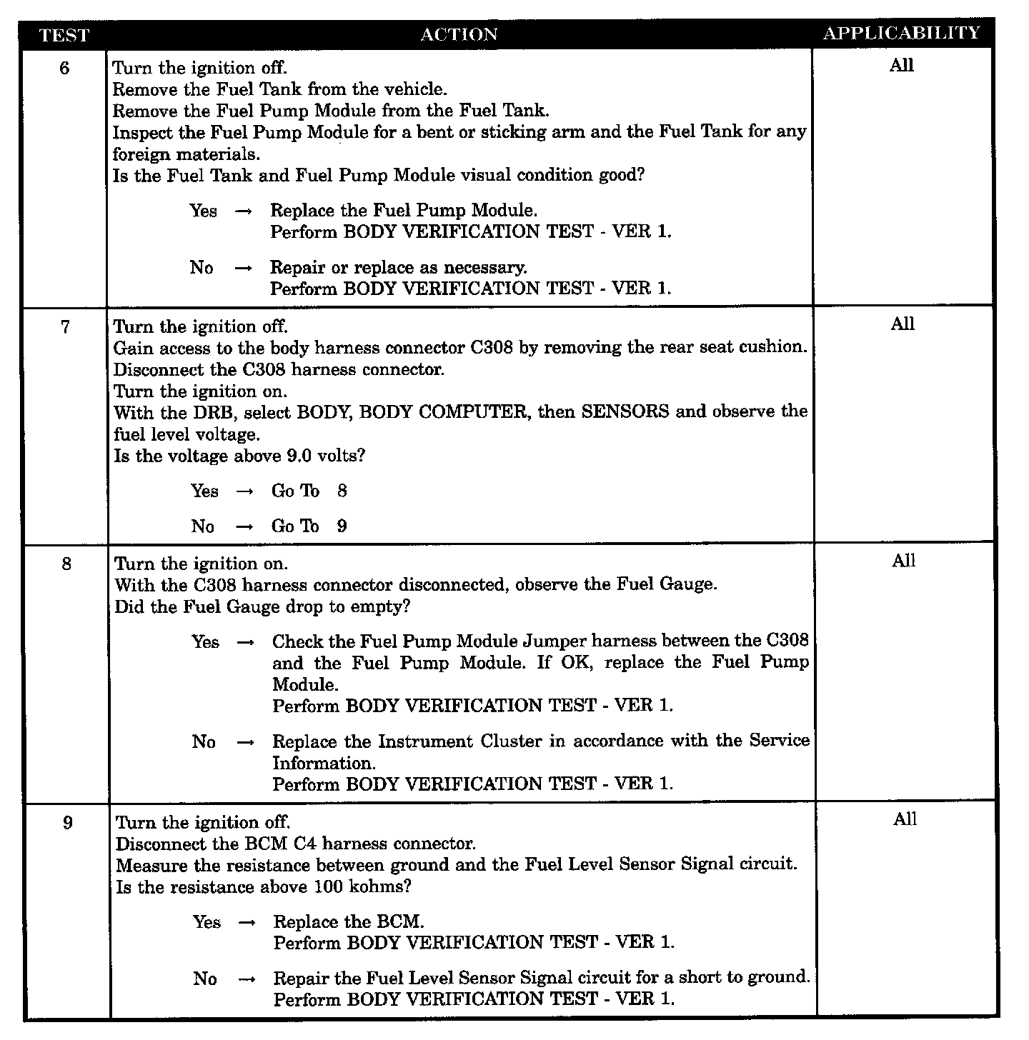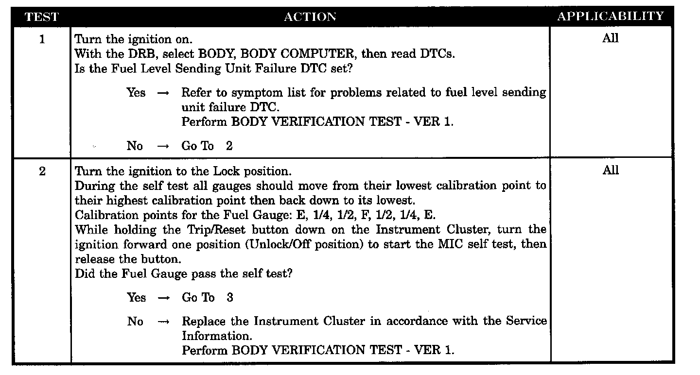 Home >> Chrysler >> 2002 >> Intrepid (CANADA) V6-2.7L >> Repair and Diagnosis >> Powertrain Management >> Computers and Control Systems >> Body Control Module >> Testing and Inspection >> Symptom Related Diagnostic Procedures >> Fuel Gauge Not Operating Properly