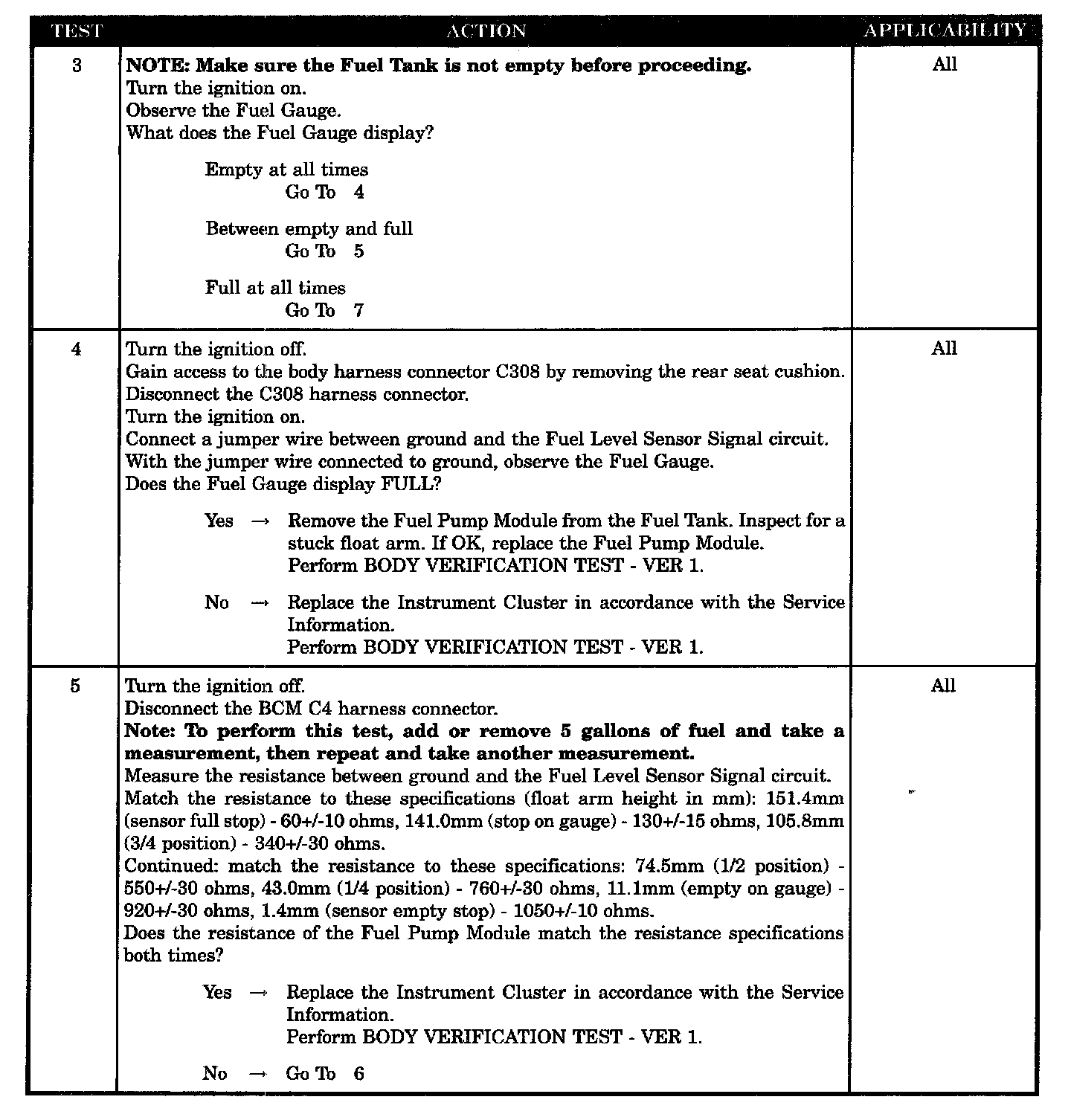 - Check for fuel level sending unit related BCM DTCS