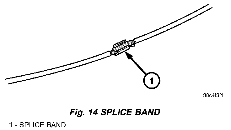 4. Using crimping tool, Mopar P/N 05019912AA, crimp the splice clip and wires together (Fig. 15).